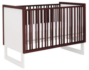 Nurseryworks cribs, a competitor to Oeuf, has the Loom Crib that meets our outlined goals and has a unique personal design. The Loom Crib is non-toxic, made of catalpa wood, which is a fast growing wood, is made in the US (after speaking to the manufacturer we were informed that we received misleading information from some of the online suppliers and the Loom crib is in fact made in China) just squeezes into our upper tier budget level. But, as architects, what really appealed to us was the design of the crib. With typical crib designs, we dislike the rigidity of the repetitive vertical slats that seem to recall prison bars. What we loved with the loom crib is how the designers took the government required minimum spacing of the vertical slats and had some fun with it! Instead of equally spaced slats, they are varied to create visual interest. If you select the natural or dark finish the slats and wrapping trim contrast with the white side panels and frame. The hardware is neatly hidden and it’s a convertible crib with 3 mattress positions. The best part we found was that you do not need to spend the hefty price for the toddler conversion kit since the crib does not require it (whereas most do to keep the crib stable) to remain functional if the front side remains open. You could then buy an inexpensive guard and put it under the mattress and once your toddler is ready for a twin bed, the crib could be used as a day bed and still look great. Additionally, Nurseryworks has been very responsive to any questions via email. We are excited for our find and wanted to share it with everyone.