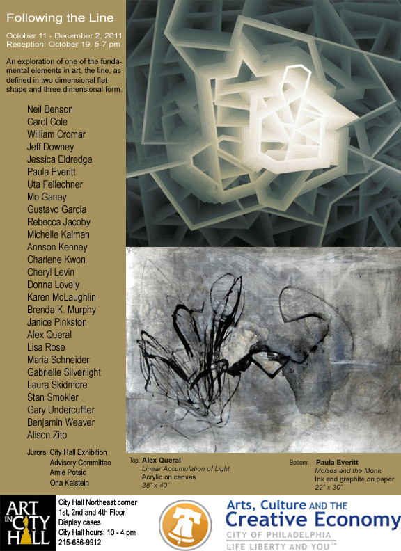 Last week we attended the opening of our second gallery exhibit this month, at the AIA Center for Architecture. Much to our surprise 4 out of the 5 pieces submitted sold within the first hour of the show! We are extremely excited about the positive response. The week before, we also attended the opening of the exhibit at City Hall entitled “Following the Line”. One of our paintings was selected for this exhibit which is being held throughout the corridors of the Philadelphia City Hall. Proceeds from the sales of all our work, will be going towards our adoption fundraising efforts. Thanks to everyone for the positive feedback and continued support.